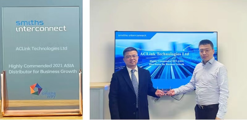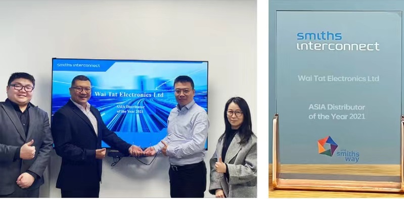 在亚洲,两个杰出的fen合作伙伴被授予奖项,分别是:伟达电子有限公司(Wai Tat Electronics Ltd),史密斯英特康长期的合作伙伴,他们在2021财年赢得了很多定制化设计订单,销售业绩相较上一年表现出良好的增长,被授予年度代理商奖项,与此同时,联骏机电设备(上海)有限公司(ACLink Technologies Ltd) 获得年度业务增长奖。 伟达电子因其在支持 Diamond RF Resistives® 和 Thermopad® 温度可变衰减器的销售方面所做的努力而受到高度赞扬,而Aclink在医疗和工业市场销售高可靠性圆形和模块化连接器方面所做出的非凡努力也同样值得被肯定。